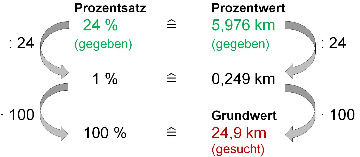 Auch den Grundwert kann man mithilfe des Dreisatzes berechnen: